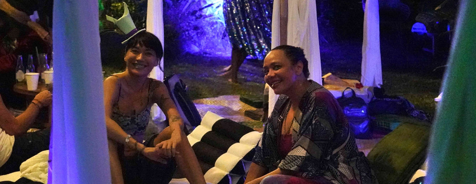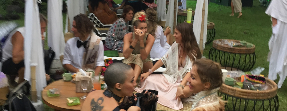 In our trust and divine protection, among all regions in Bali under the restrictions, Karagassen remained open as the event took place, the rain ceased to fall during our fantasy stage "Tea Party" placed upon the green grass carpet at the river's bank overlooking the mountains, everyone's presence uplifted as highlighted our stages of freequensees open one by one gracefully through out the event.
